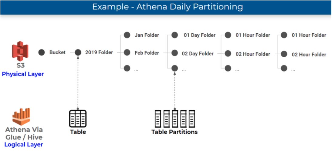 If you’re unfamiliar with how partitioning works in Athena, you should check out our previous article about partitioning data on S3. In short, folders where data is stored on S3, which are physical entities, are mapped to partitions, which are logical entities, in the Glue Data Catalog. Athena leverages partitions in order to retrieve the list of folders that contain relevant data for a query.