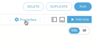 1. Select the SQL window from the upper right hand corner. Keep in mind that everything that you do on the UI will be reflected in SQL and vice versa.
