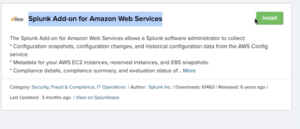 2. Find the Splunk Add-on for Amazon Web Services app and click on Install.