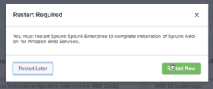 2. The installation might take a few seconds and Splunk will prompt you to restart. Click on Restart Now.