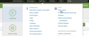 6. Click on Settings and Data inputs on your Splunk UI’s upper right hand corner.